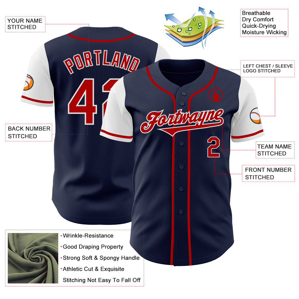 Custom Navy Red-White Authentic Two Tone Baseball Jersey