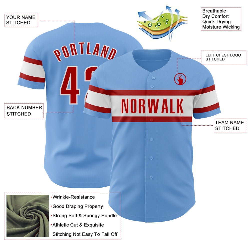 Custom Light Blue Red-White Authentic Baseball Jersey