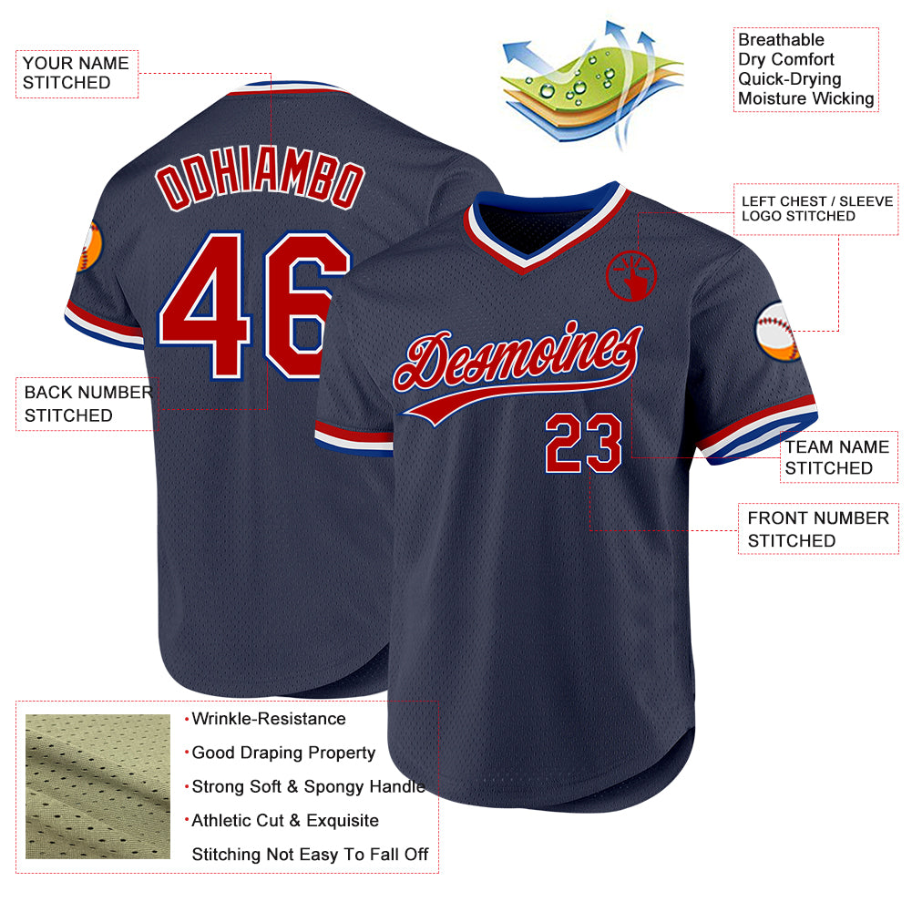Custom Navy Red-Royal Authentic Throwback Baseball Jersey