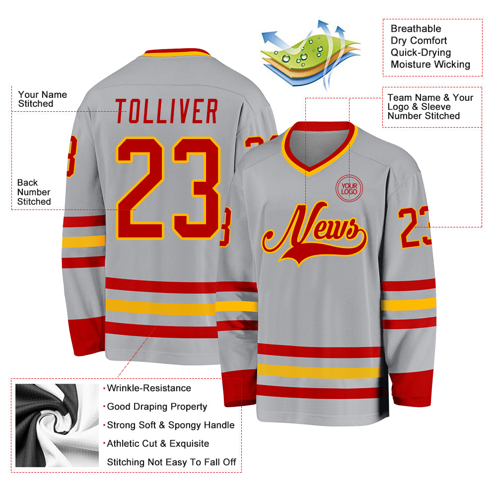 Custom Gray Red-Gold Hockey Jersey