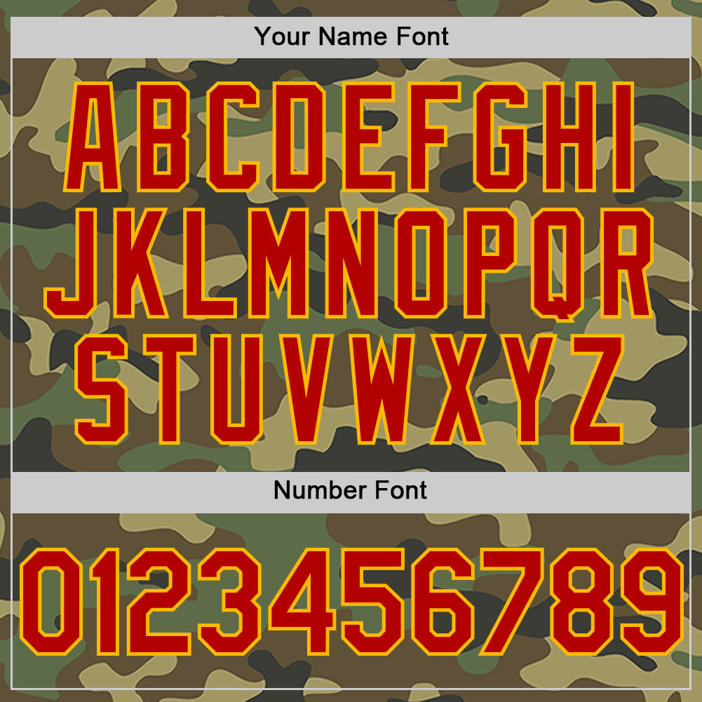 Custom Camo Red-Gold Bomber Full-Snap Varsity Letterman Salute To Service Hoodie Jacket