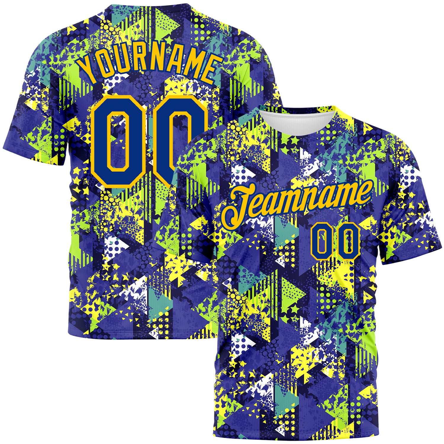 Custom Graffiti Pattern Royal-Gold 3D Creative Geometric Figures Triangle And Dots Performance T-Shirt