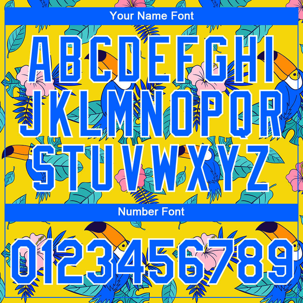 Custom Yellow Royal-White 3D Pattern Design Tropical Hawaii Plant With Bird Performance T-Shirt