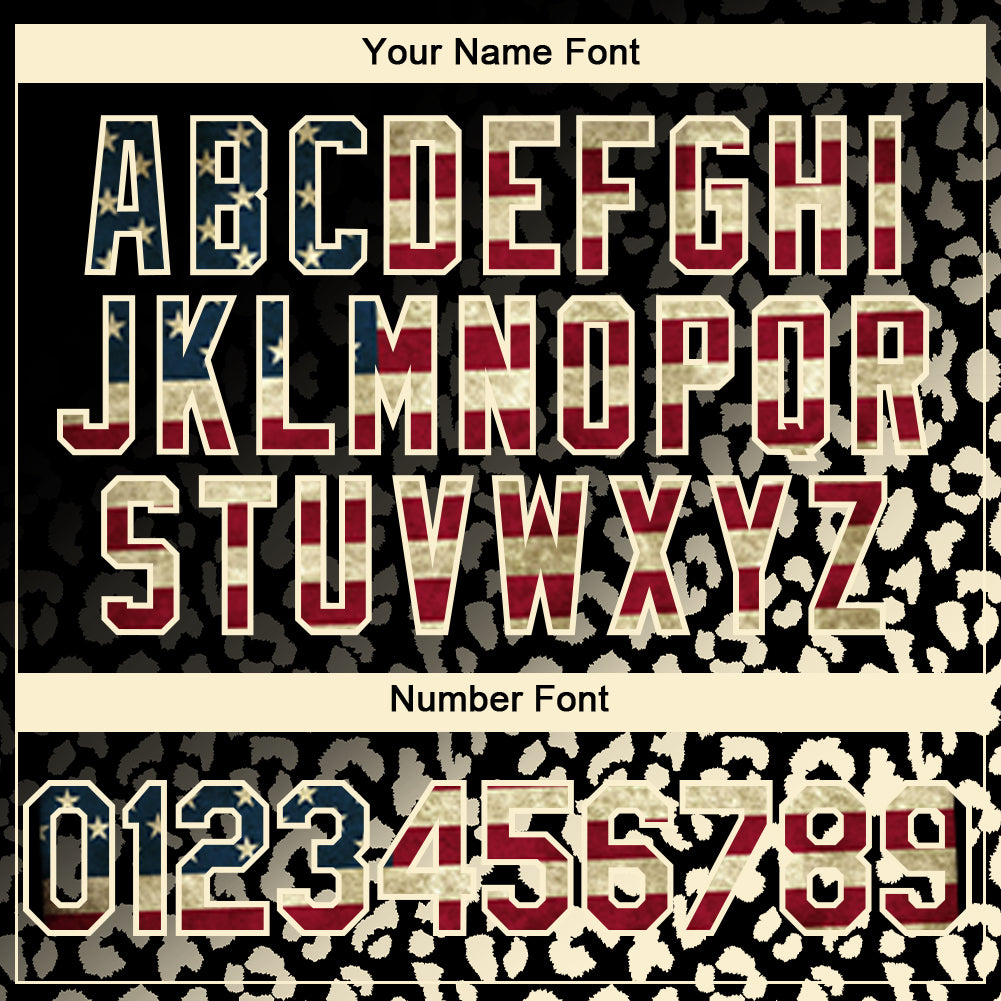 Custom Black Vintage USA Flag-Cream 3D Pattern Design Leopard Print Fade Fashion Authentic Baseball Jersey