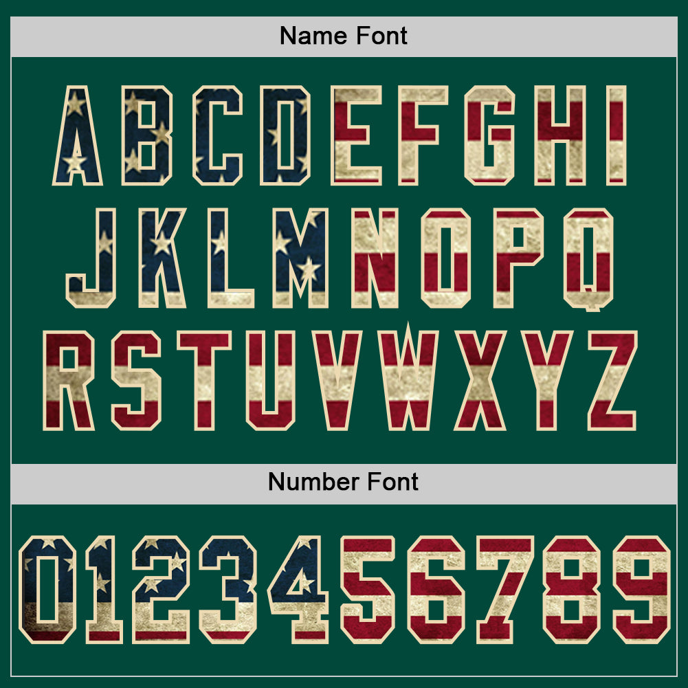 Custom Green Vintage USA Flag Cream-Red Mesh Authentic Throwback Football Jersey