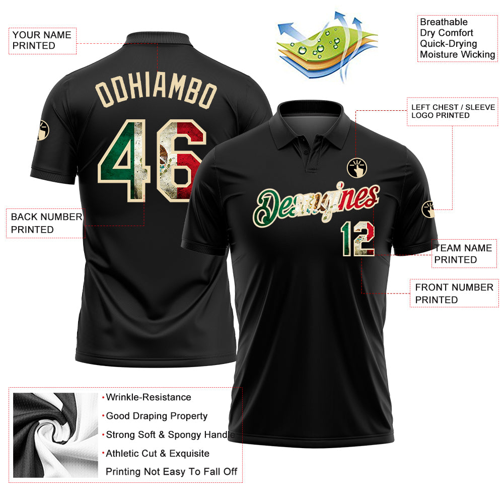 Custom Black Vintage Mexican Flag-City Cream Performance Golf Polo Shirt