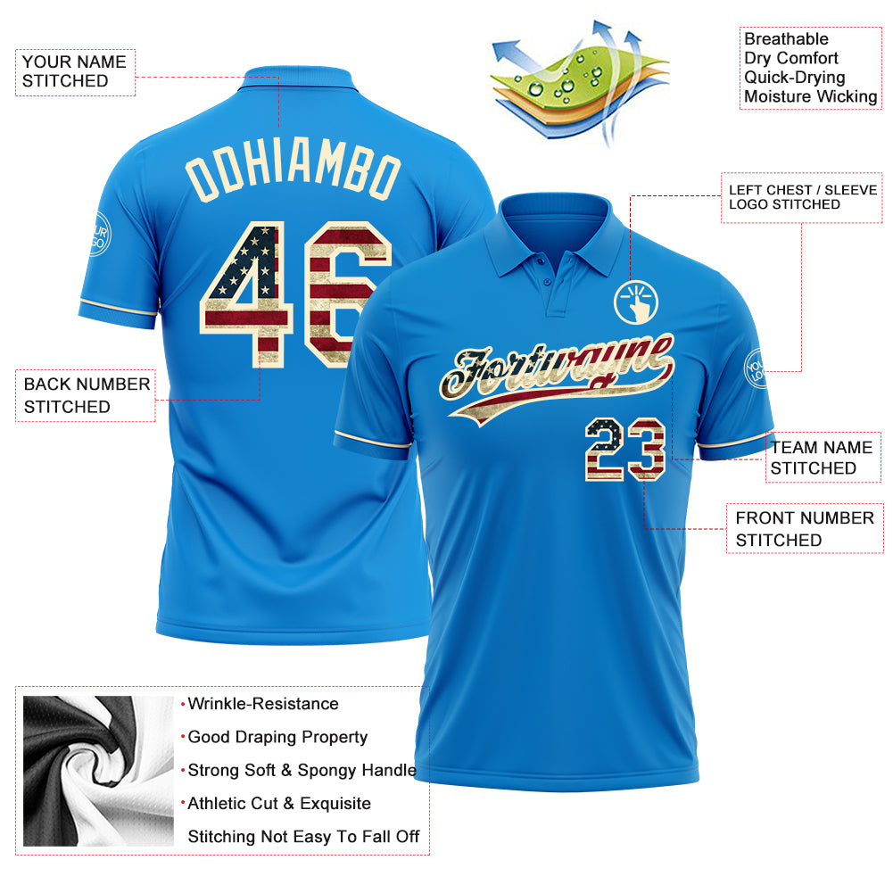 Custom Blue Vintage USA Flag-Cream Performance Vapor Golf Polo Shirt