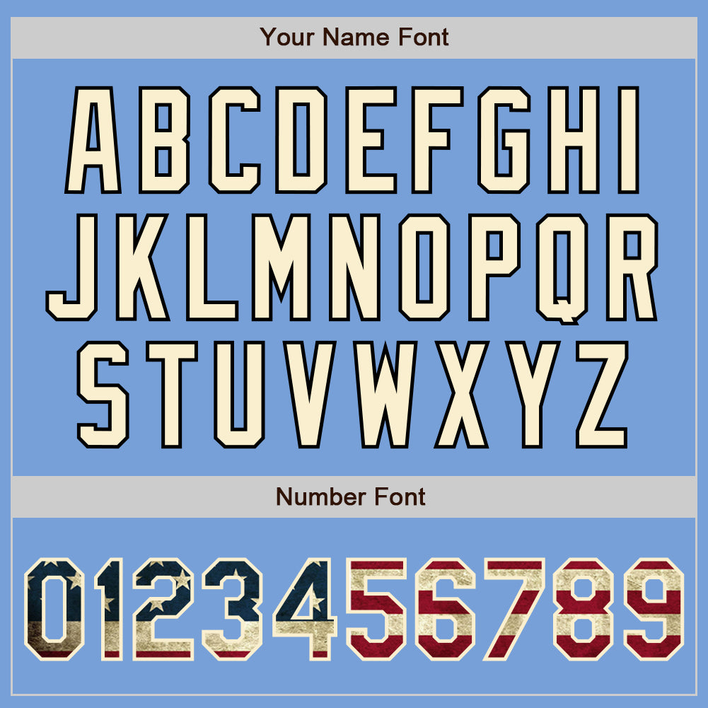 Custom Light Blue Vintage USA Flag Cream-Black Bomber Full-Snap Varsity Letterman Jacket