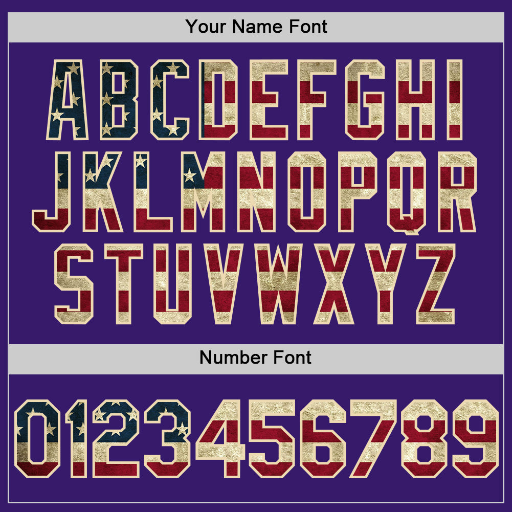 Custom Purple Vintage USA Flag Cream-Black Bomber Full-Snap Varsity Letterman Hoodie Jacket