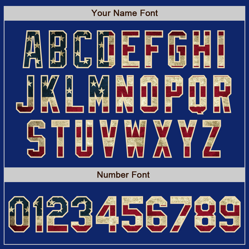 Custom Royal Vintage USA Flag Cream-Black Bomber Varsity Letterman Zipper Jacket