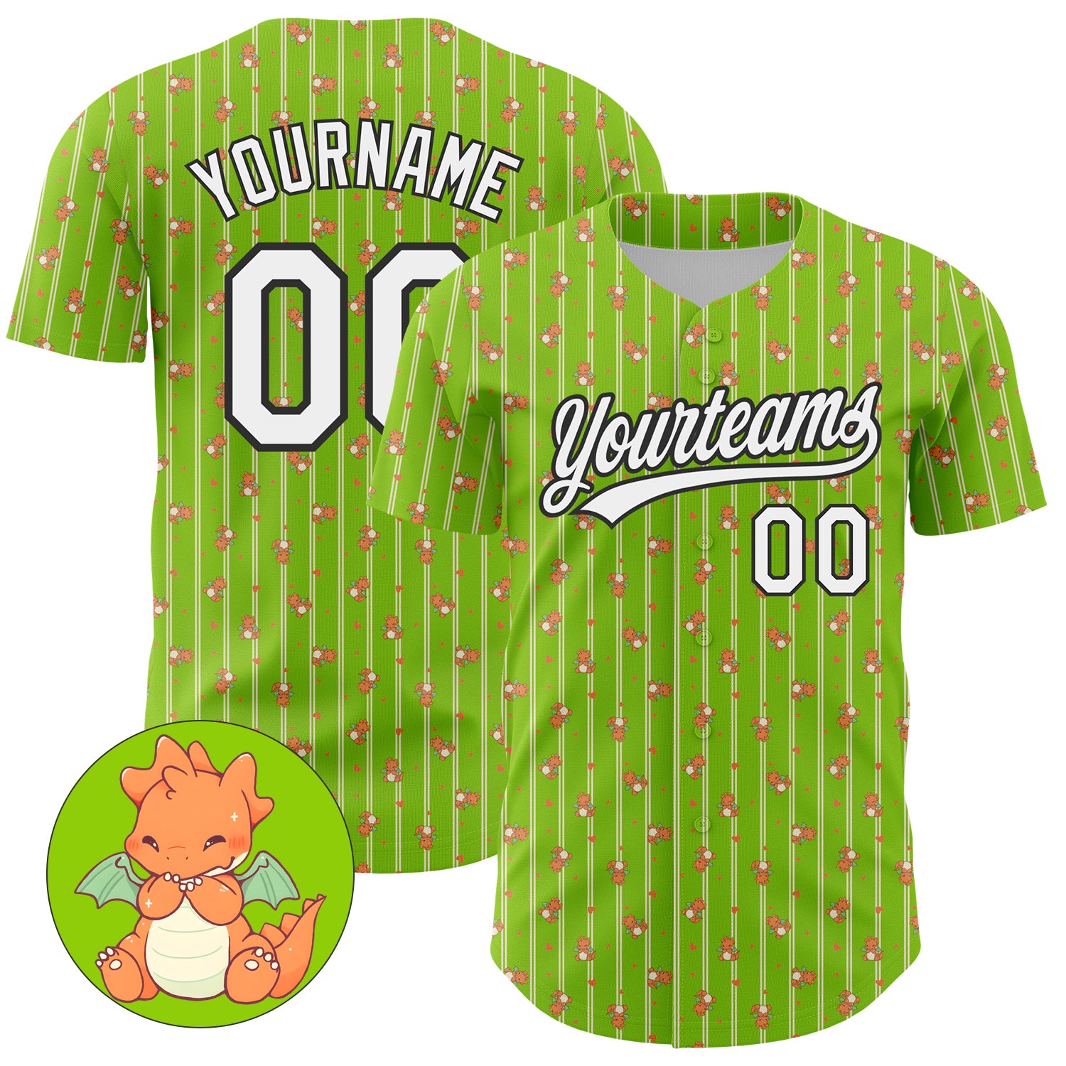 Custom Neon Green White-Black 3D Pattern Design Animal Dinosaur Authentic Baseball Jersey