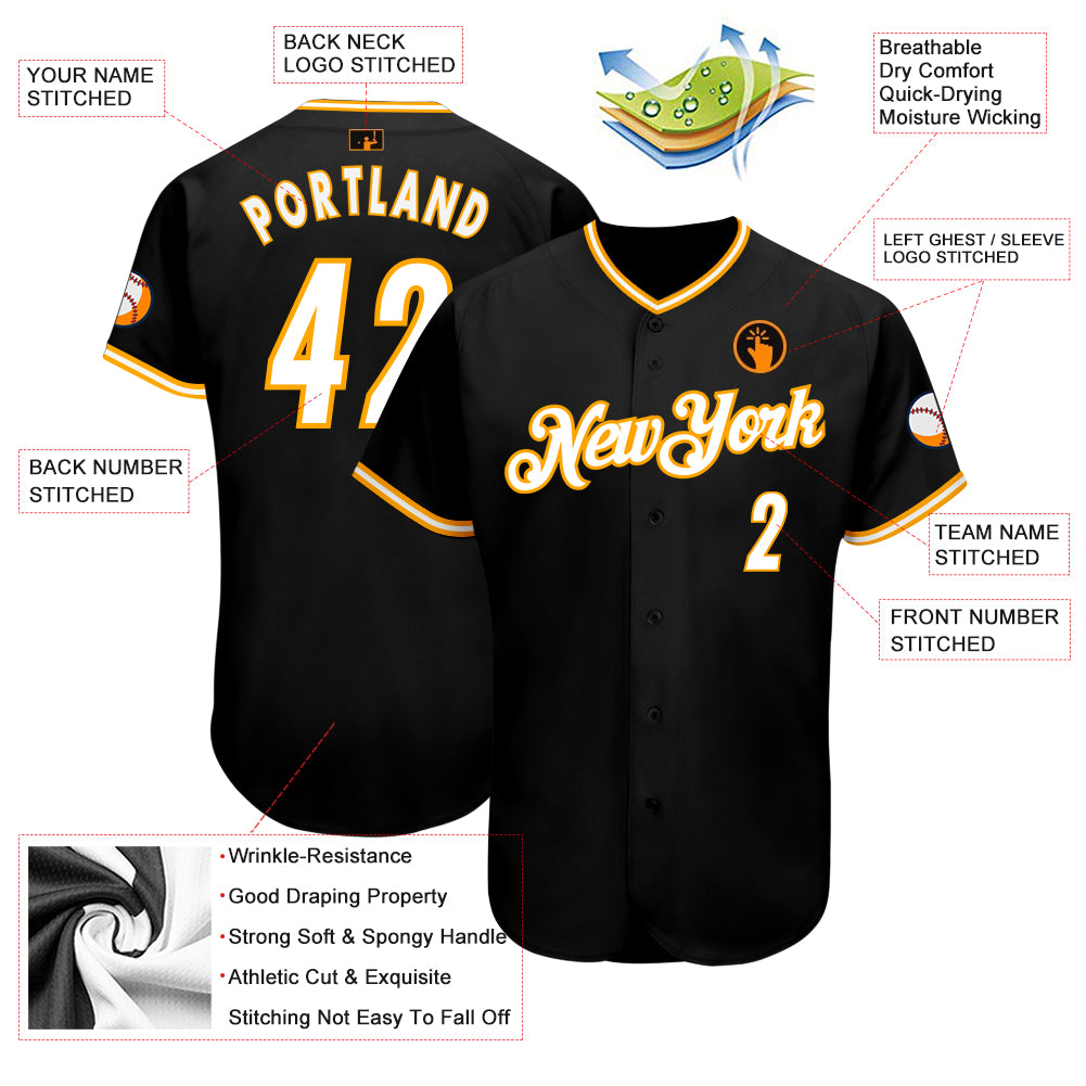 Custom Black White-Gold Authentic Baseball Jersey