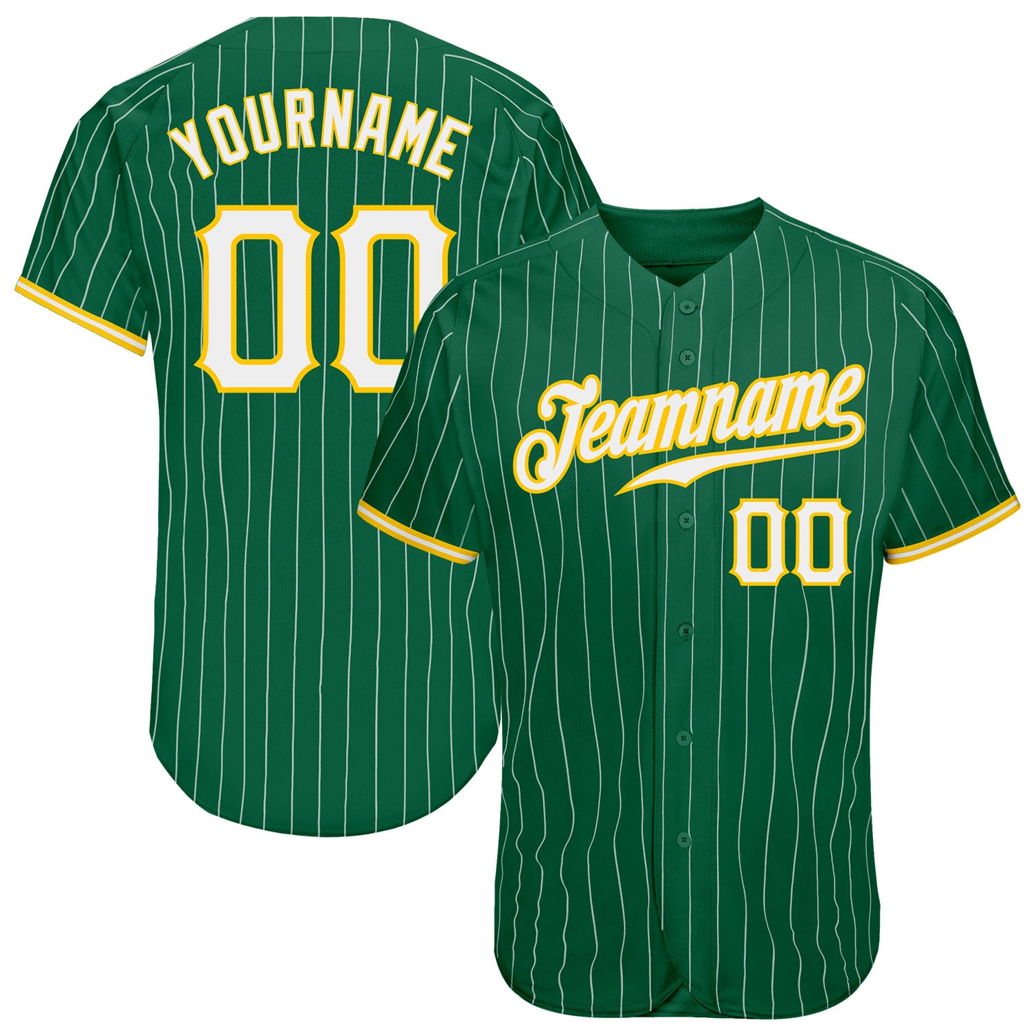 Custom Kelly Green White Pinstripe White-Gold Authentic Baseball Jersey