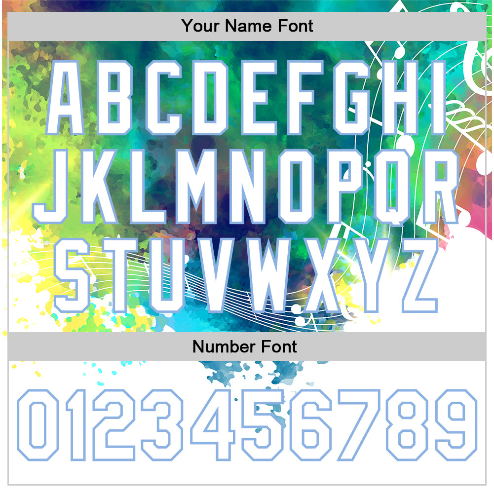 Custom White Light Blue 3D Pattern Design Music Festival Abstract Colorful Music Grunge Style Authentic Baseball Jersey
