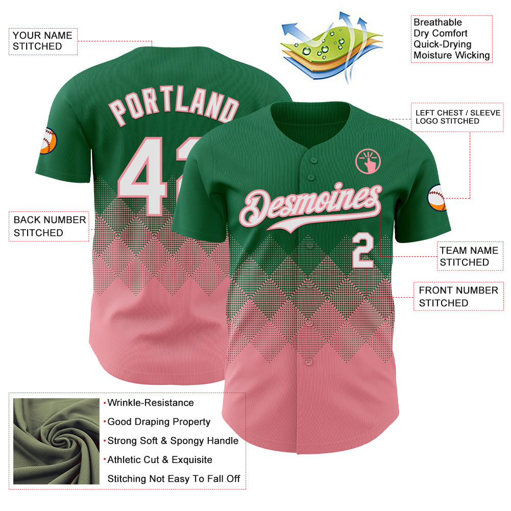 Custom Kelly Green White-Medium Pink 3D Gradient Square Shape Authentic Baseball Jersey