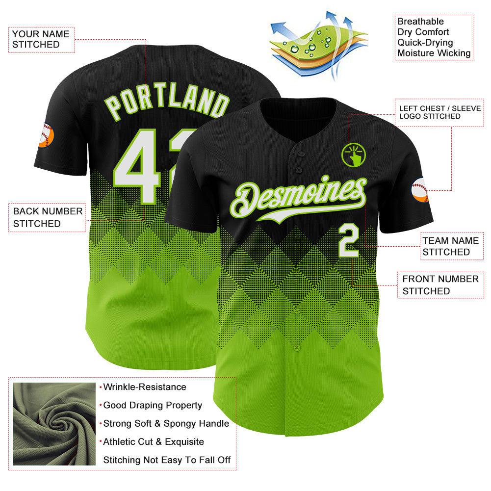 Custom Black White-Neon Green 3D Gradient Square Shape Authentic Baseball Jersey