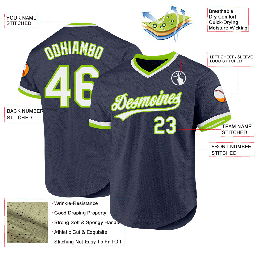 Custom Navy White-Neon Green Authentic Throwback Baseball Jersey