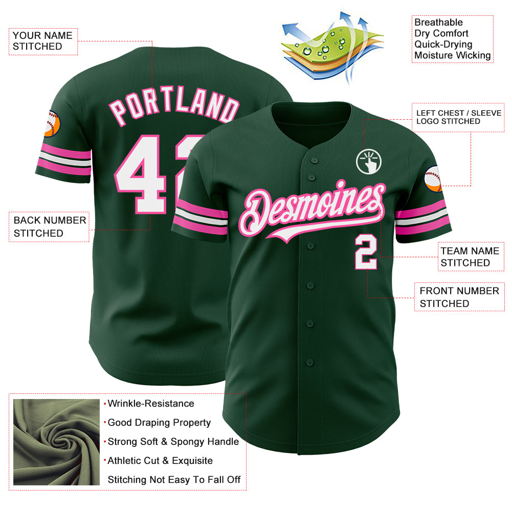 Custom Green White-Pink Authentic Baseball Jersey
