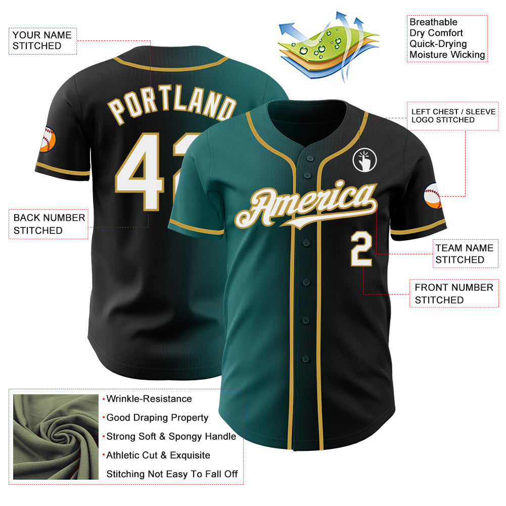 Custom Black White Teal-Old Gold Authentic Gradient Fashion Baseball Jersey