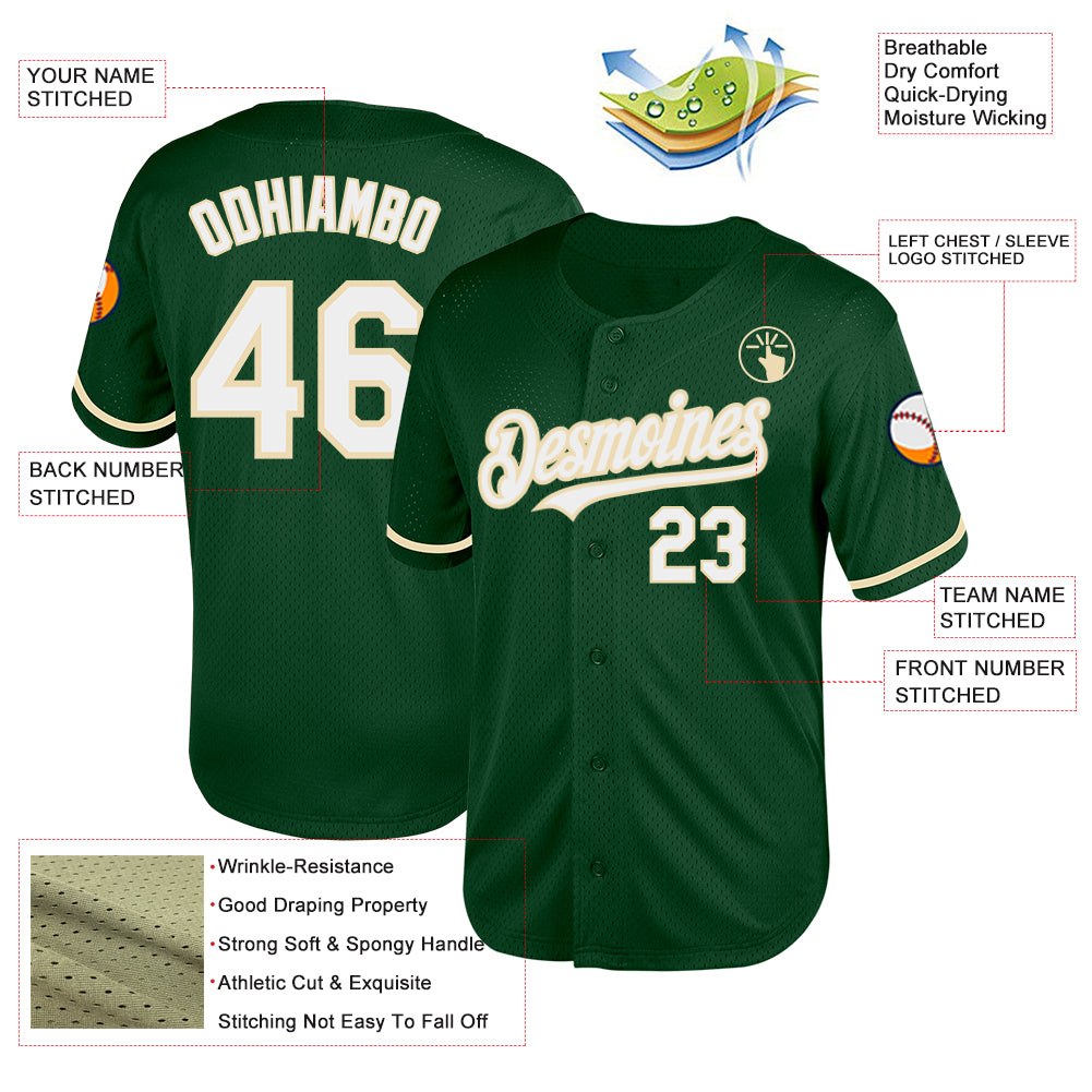 Custom Green White-Cream Mesh Authentic Throwback Baseball Jersey