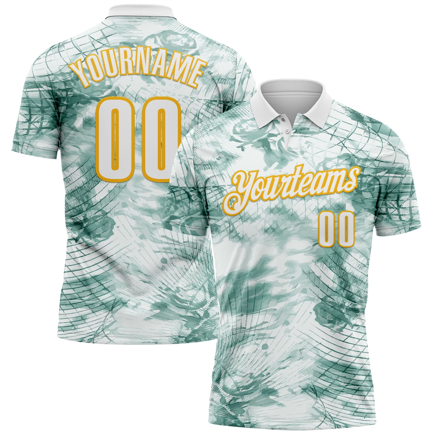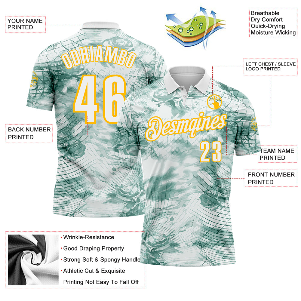 Custom White Gold 3D Bowling Abstract Network Performance Polo Shirt
