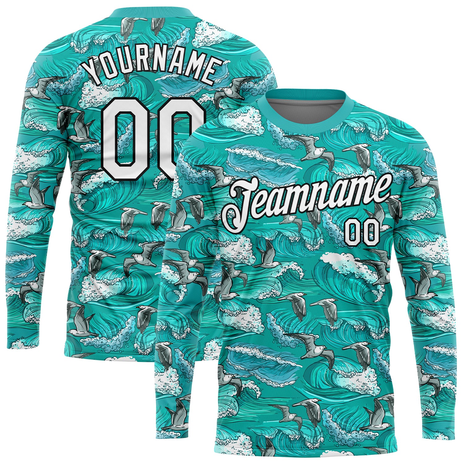 Custom Aqua White-Black 3D Pattern Design Sea Wave Fishing Performance T-Shirt