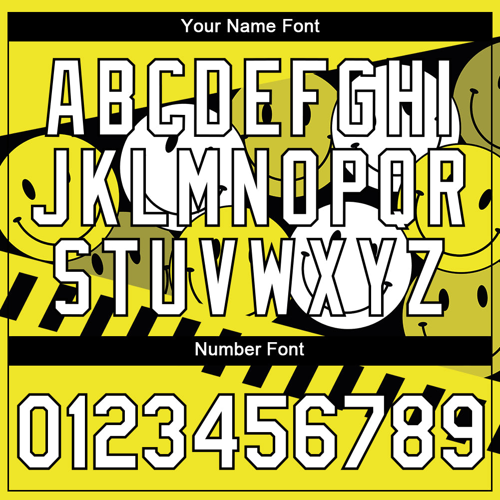 Custom Neon Yellow White-Black 3D Pattern Design Smile Emoji Performance T-Shirt