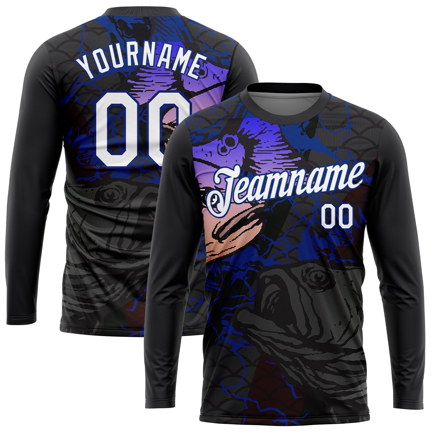 Custom Black White-Royal 3D Pattern Design Fish Performance T-Shirt