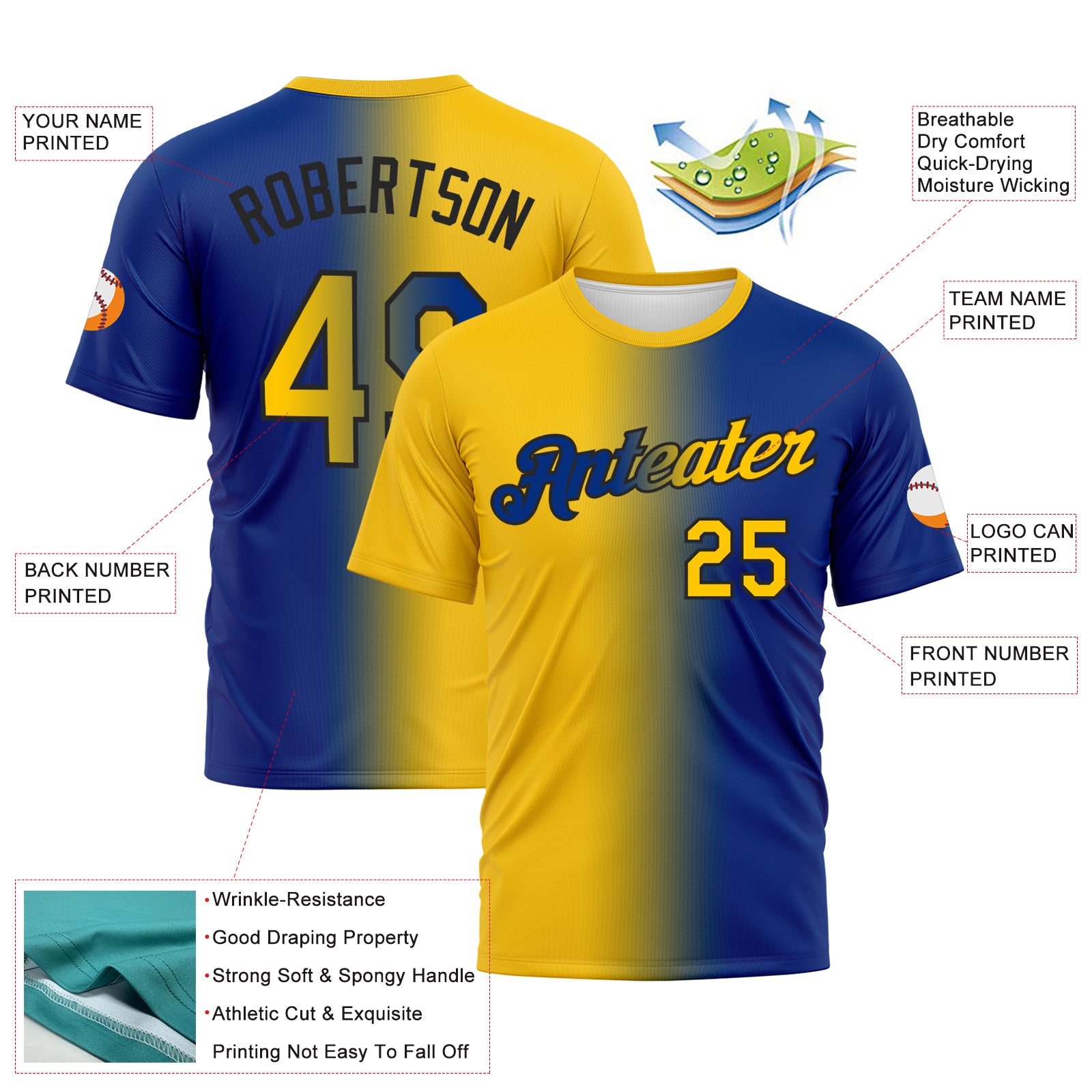 Custom Royal Yellow-Black Gradient Fashion Performance T-Shirt
