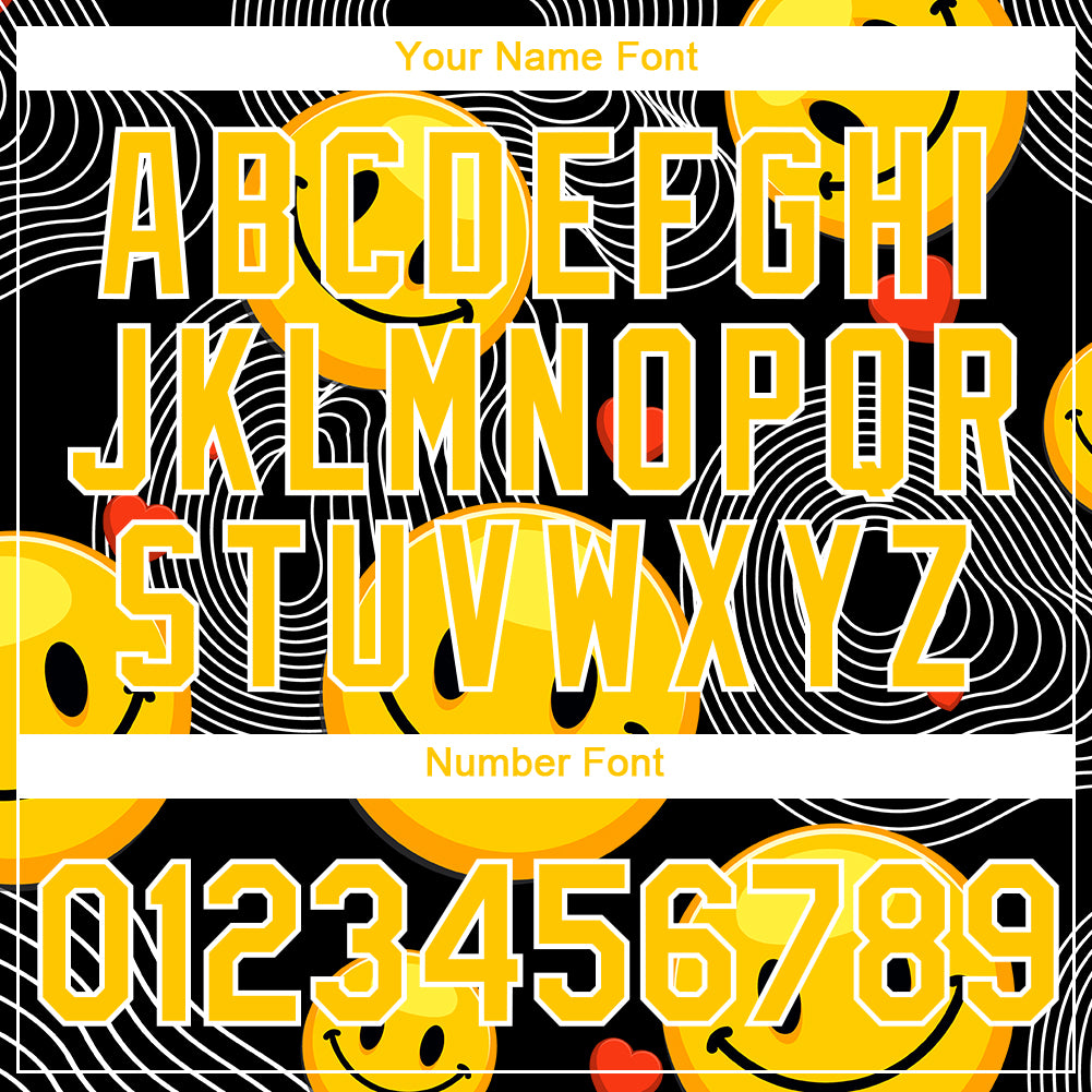 Custom Black Yellow-White 3D Pattern Design Smile Emoji Performance T-Shirt